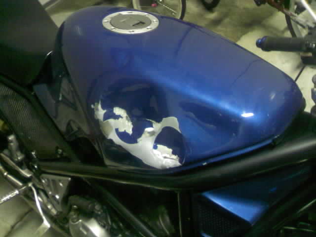 GETしたタンクは、外装は浅いキズや一部クリヤーの剥れとサビがあるケド、凹みは全く無い。