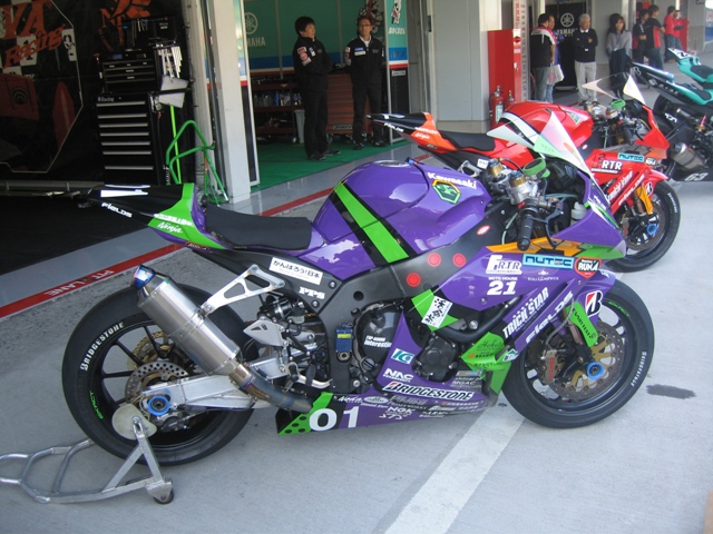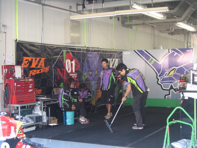 ピットやピットクルーもエヴァ一色。