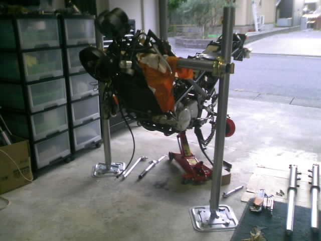 早速それを組立ててバイクのフロントを浮してみると、見事浮いたo(^o^)o