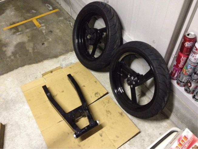 以前からスイングアームとホイールをバラして放置してました。